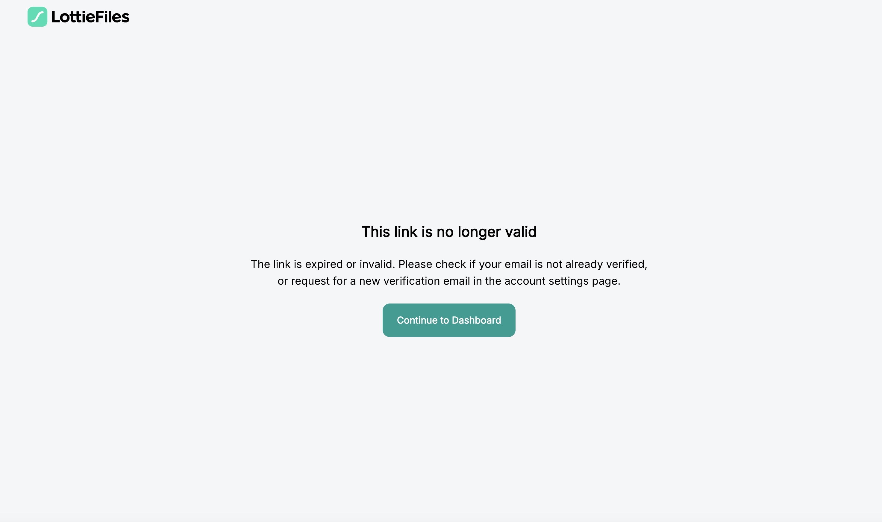 Due to a security patch on our system, usernames that include a period (.) (e.g. LottieFiles Inc.) may cause verification links (such as email change requests) to fail.